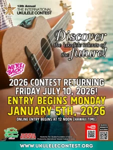 2026年1月5日正午(ハワイ時間)、第13回インターナショナルウクレレコンテストの受付が始まります。 大勢のウクレリアンからのエントリーをお待ちしています! […]