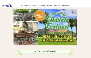 HISのサイトでウクレレフェスティバル2026のパッケージ申し込み受付がスタートしました! 渡航から宿泊、コンテスト観覧やフェスティバル演奏までをまとめてサポー […]